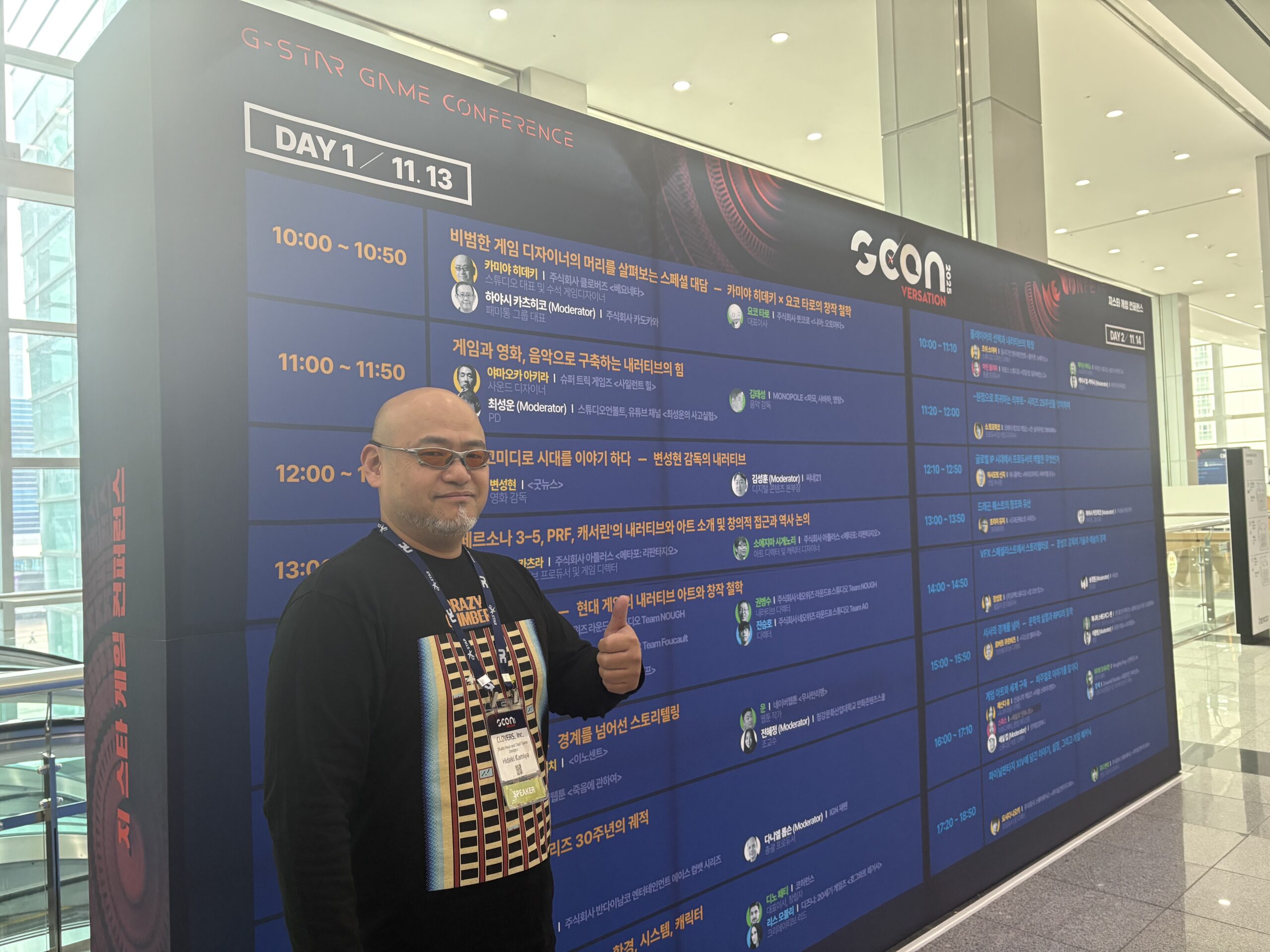 2025年11月14日、韓国・釜山で開催されたゲームショウ「G-STAR」内カンファレンス「G-CON 2025」にて、オープニングセッションとして神谷英樹とヨコオタロウ氏による対談が行われました。